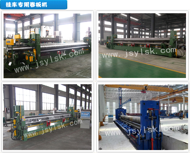 該機(jī)上輥可以垂直升降又可以水平移動(dòng),垂直升降為液壓傳動(dòng),通過液壓缸內(nèi)的液壓油作用活塞桿而獲得水平移動(dòng)通過渦輪蝸桿箱、渦輪蝸桿、絲桿絲母機(jī)構(gòu)傳遞扭矩,帶動(dòng)上輥的水平移動(dòng),下輥只作旋轉(zhuǎn)運(yùn)動(dòng)為卷板提供扭矩,下輥下部設(shè)有托輥并可調(diào)節(jié),上輥呈鼓形狀,提高制品的直線度。適用于掛車各種截面形狀罐體的卷制。